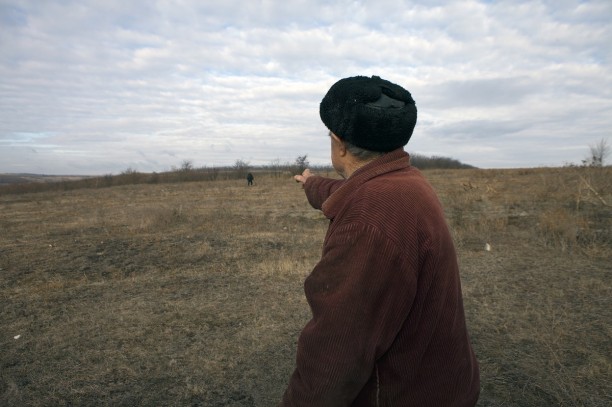 Maria H., born in 1920 : “The Jews from Odesa were brought here. It was winter, and they had rags wrapped around their feet. They were locked up in several places: in the kolkhoz stables and in a building near the post office.” ©Markel Redondo/YIU Volodymyr V., born in 1932: “The cattle pit was round; the Germans placed five or six Jews at the edge of the pit and shot them in the back with rifles.” ©Markel Redondo/Yahad - In Unum Kateryna V., born in 1925: “After the shooting, straw was placed over the bodies, gasoline was poured over them, and the bodies were set on fire. The stench was unbearable.” ©Markel Redondo/Yahad - In Unum Kateryna V., born in 1925, points out the cattle pit where several hundred Jews from Odesa were killed in 1942. ©Markel Redondo/Yahad - In Unum A barn similar to the one in which the Jews from Odesa were held before being shot in a cattle pit just beside it. Shown to our team by Kateryna V., born in 1925. ©Markel Redondo/Yahad - In Unum Volodymyr V., born in 1932, leads the Yahad team to the cattle pit where several hundred Jews from Odesa were shot in 1942. ©Markel Redondo/Yahad - In Unum Volodymyr V., born in 1932: “The pit was located right there. It was round and large, approximately 19 meters deep and about 6 meters wide.” ©Markel Redondo/Yahad - In Unum The killing site in Dmytrivka, where approximately 600 Jews from Odesa were shot in a cattle pit in March 1942. Today, there is no memorial to commemorate the victims. ©Markel Redondo/Yahad - In Unum